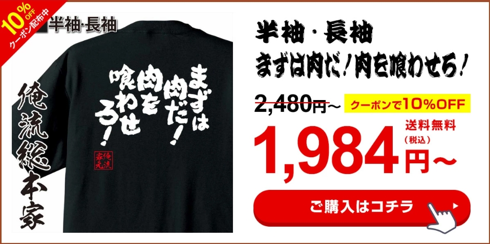 【5月29日『俺流肉の日』特別セール!人気肉Tシャツ10%OFFクーポン】 – 楽天ランキング1位多数受賞の俺流総本家が贈る特別キャンペーン!「肉好き必見のユニークデザインでウケ狙いバツグン」