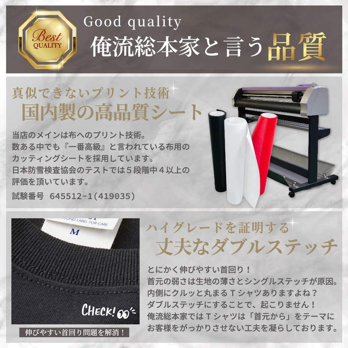 俺流総本家のTシャツは、高品質な生地選びから鮮明なプリントまで、品質にこだわり抜いております。