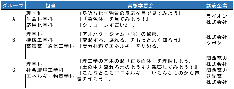 近畿大学理工学部の概要や説明、施設見学等を行い、理学科・生命科学科・応用化学科・機械工学科・社会環境工学科・電気電子通信工学科・エネルギー物質学科の教員協力のもと、グループに分かれて講演・実験を実施します。また理系分野に関連が深い企業の担当者から講演などを行います。