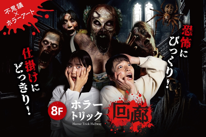 お客様アンケートでも導入希望が多かったホラーコンテンツを「アートリックミュージアム」として「不思議×ホラーアート」をテーマに新規製作。「恐怖にびっくり!仕掛けにどっきり!」のアート性が高い体感型作品として6作品を新展開。8Fの回廊型スペースにて、従来になかった不思議で新しいホラー体感をお楽しみいただけます。内容は来館してのお楽しみ。あなたはこの恐怖の仕掛けに耐えられるか?