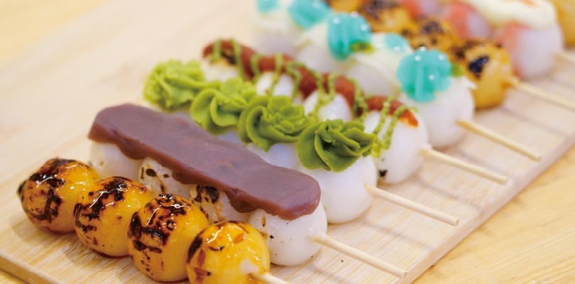中でも開運だんごは常時44種類の味を展開。定番のみたらしをはじめ、静岡抹茶やわさび醤油、五穀あんの他、キムチーズやタマゴサラダなど珍しい味も。さらに季節に応じて一部メニューが入れ替えとなるため、その種類は100以上。食べ尽くすのは至難の技です。