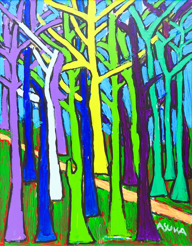 本展は、「異彩を、放て。」をミッションに、障害のイメージ変容と新たな文化の創出を目指すクリエイティブカンパニー「株式会社ヘラルボニー」代表の松田崇弥・文登兄弟が、同郷岩手県出身の宮沢賢治の物語「虔十公園林(けんじゅうこうえんりん)」から着想を得て企画しました。主人公の虔十は、周囲から「少し足りない」と思われていた青年で、植物が育ちにくい土壌の中で杉苗700本を植え続けました。物語の中で杉の木は虔十の死後も育ち続け、「虔十公園林」として子ども達の遊び場になりました。