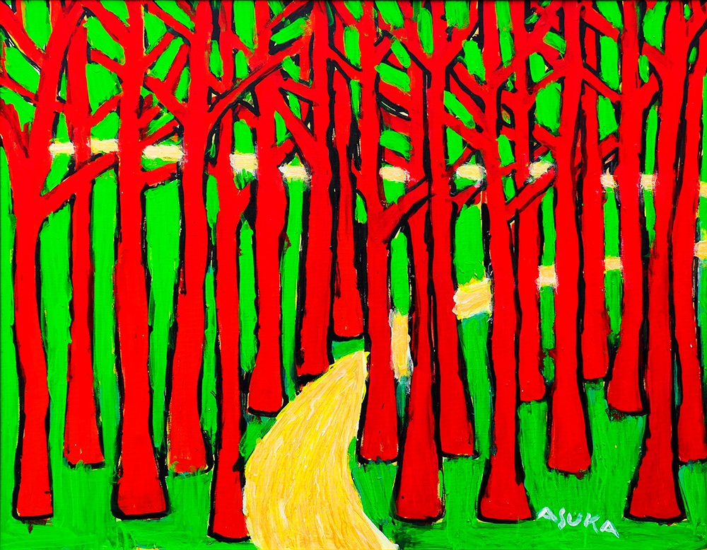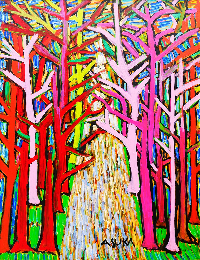 クーピーペンシルやクレヨンを塗り重ねることで作り上げられた作品は、一見すると、素早い鉛筆の動きを要する激しい制作態度を連想させる。しかし実は、彼女の制作は非常にゆっくりと穏やかである。彼女の描き出すひとつひとつの色は、お互いに混じり合うことなく、それぞれにその美しさを主張しながら画面の上に現れ、激しさと静けさが不思議に同居しており、心を惹きつけられずにはいられない。