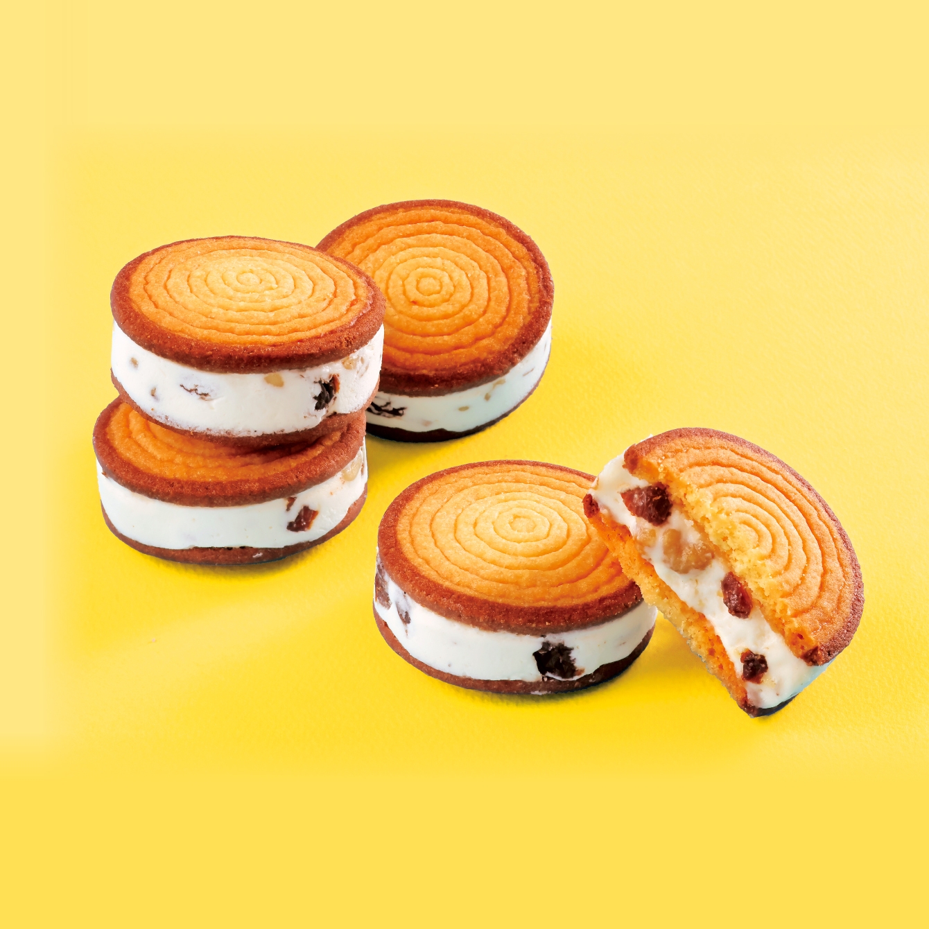 芳醇なラムレーズン、香ばしいくるみをサンドしました。
