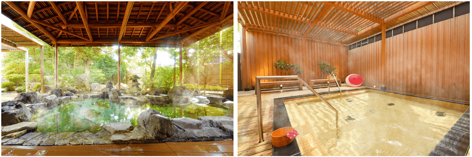 庭園露天風呂には岩風呂とすのこ風呂、趣の異なる2つの浴槽をご用意し、落ち着いた雰囲気でじっくりと温泉をお楽しみいただけます。静かな温泉旅をお探しのご夫婦やカップル、母娘旅にお薦めの宿です。