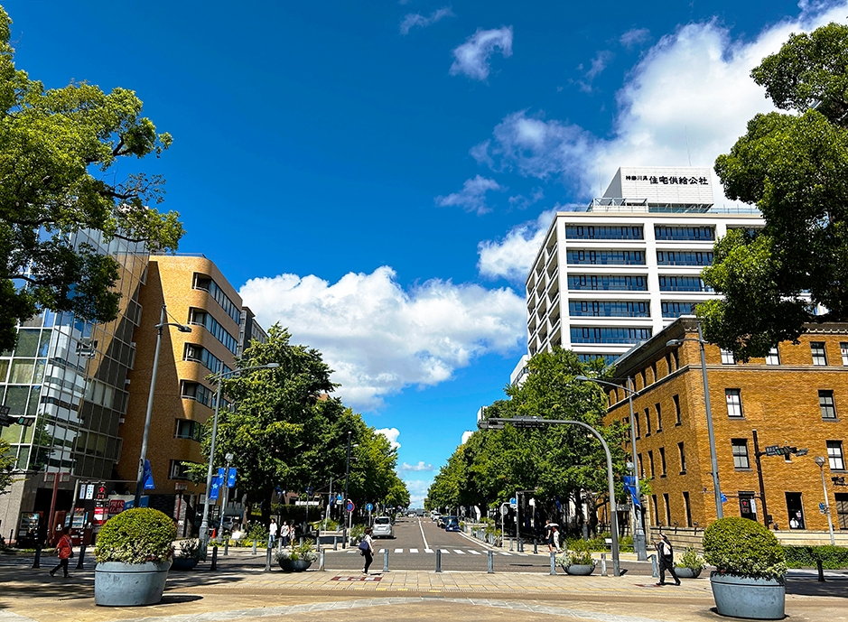 公社ビルのある日本大通りは、明治3年(1870年)に整備された日本初の本格的西洋式街路。