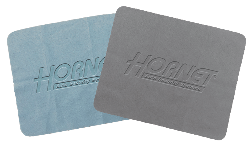 HORNETロゴ入りクリーニングクロスは車内清掃や本製品と車両のステアリングが接触する部分の保護としてもご利用いただけます。