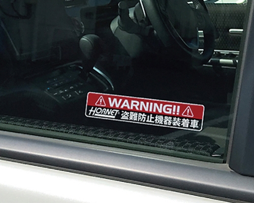 犯罪抑止効果が期待できるHORNETロゴが入った窓ガラス用内貼り防犯ステッカーを2枚付属しました。