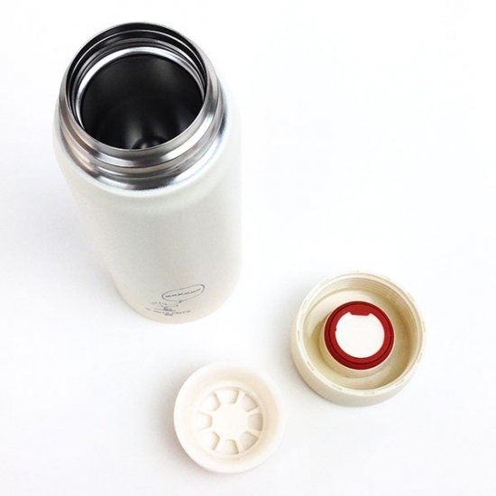 あえて水筒の蓋の裏を見せることも少ないと思いますが、ゴムパッキンが赤!というところもオシャレです。