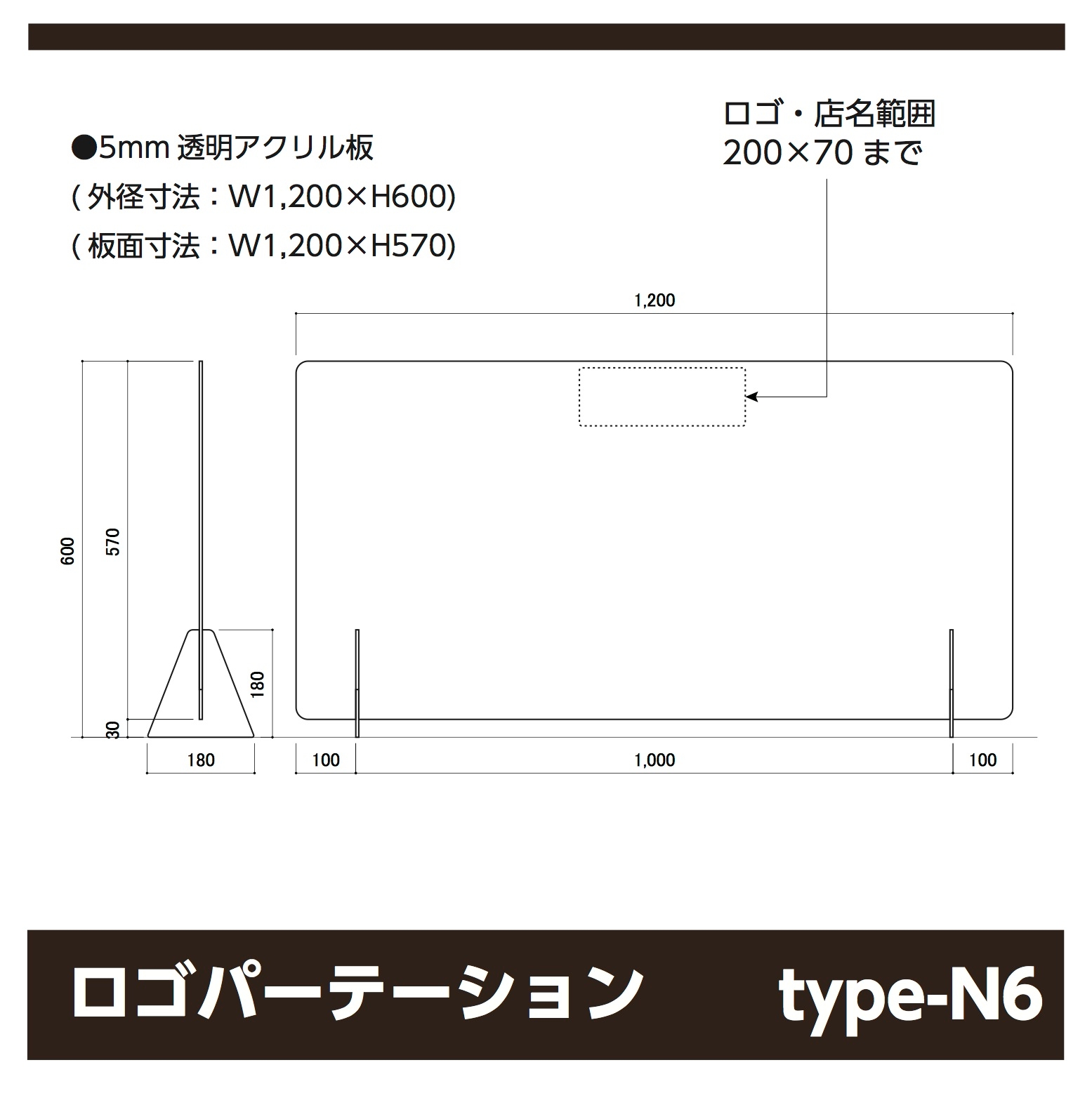 名入れについては、お好きな色(10色)お好きな書体(3種類)から選んで頂くことであなた好みのパーテーションを作ることが可能です。ロゴがある場合でも10色よりお選び頂けます。文字数は20文字まで可能です。