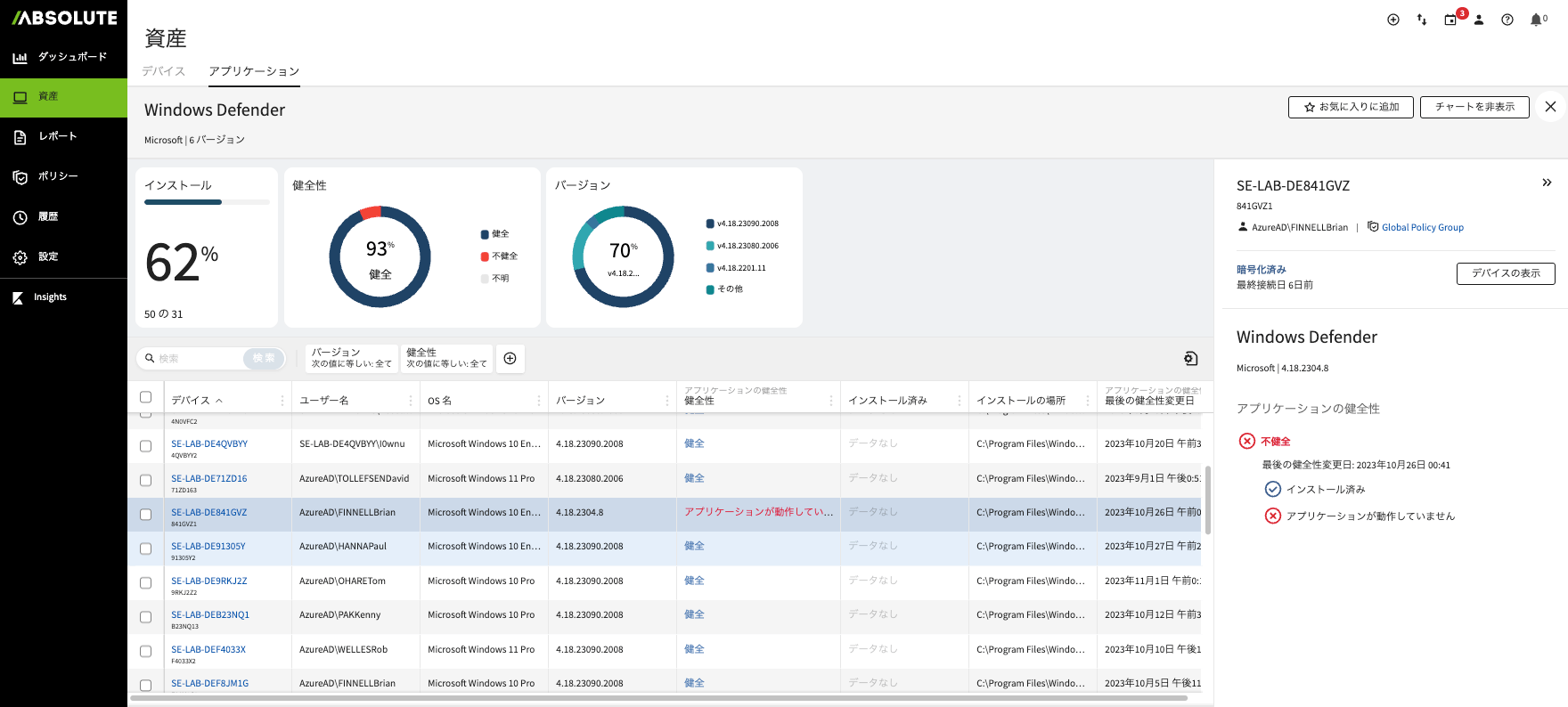 Application Health機能は、Absolute Secure Endpointの、Absolute Resilienceライセンスを契約しているお客様にご利用いただけます。