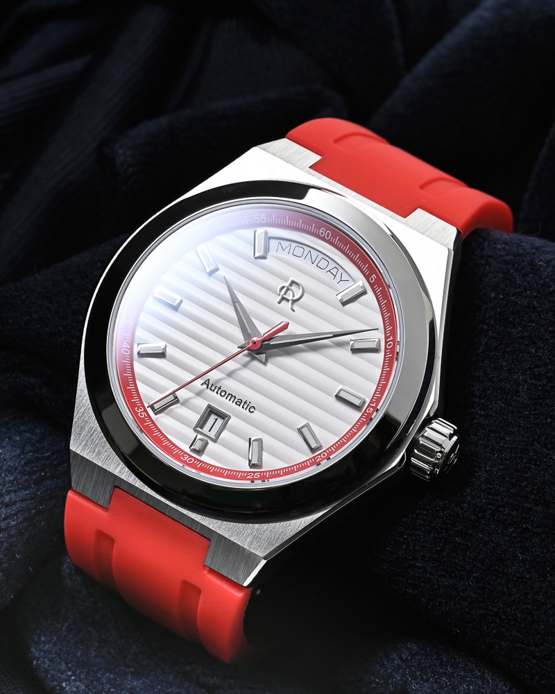 A904モデル発売を記念し2021年6月22日から2021年7月23日までの間、選択部品として904Lメタルブレスレット仕様をお選びいただけたお客様に、交換ラバーベルト全種(ブラック/レッド/イエロー)をプレゼントします。