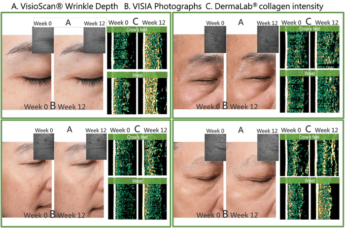 ※2 キユーピーと台湾のHungKuang University(弘光科技大學)許慈芳准教授との共同研究により、ヒアルロン酸の経口摂取による皮膚水分増加としわ改善を、ヒト試験で確認した(図2参照)。Beneficial Effects of Oral 120mg Hyaluronic Acid on Human Skin Aging A Randomized, Double blind, and Placebo controlled Study. (2020年)
