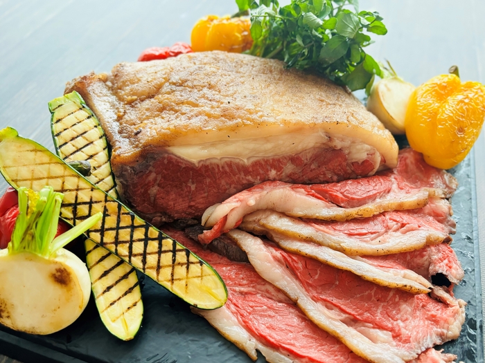 低温でじっくり焼き上げた国産牛ローストビーフのカッティングサービスをはじめ、店内仕込みの十割蕎麦や大阪らしさを感じられるものまで、和洋多彩なメニューをご用意いたします。