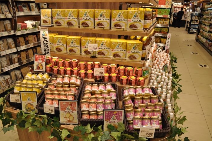 大阪府内で生産・収穫された農産物を原料に使用した当社オリジナルの「大阪産(もん)」商品を取り扱いしております。お店がある門真市の特産品「門真れんこん」を使用した「門真れんこんカレー」が一番人気!ぜひご賞味ください。