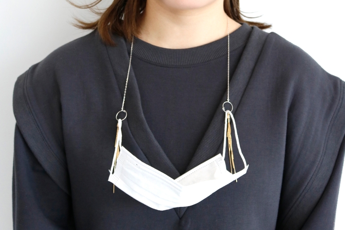 チェーンやネックレスを付けてマスクホルダーとしても。