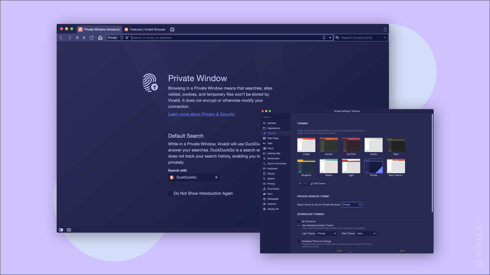 さらに、プライベートウィンドウに独自のカスタムテーマを設定できるようになりました。これは、他のブラウザにはない機能です。