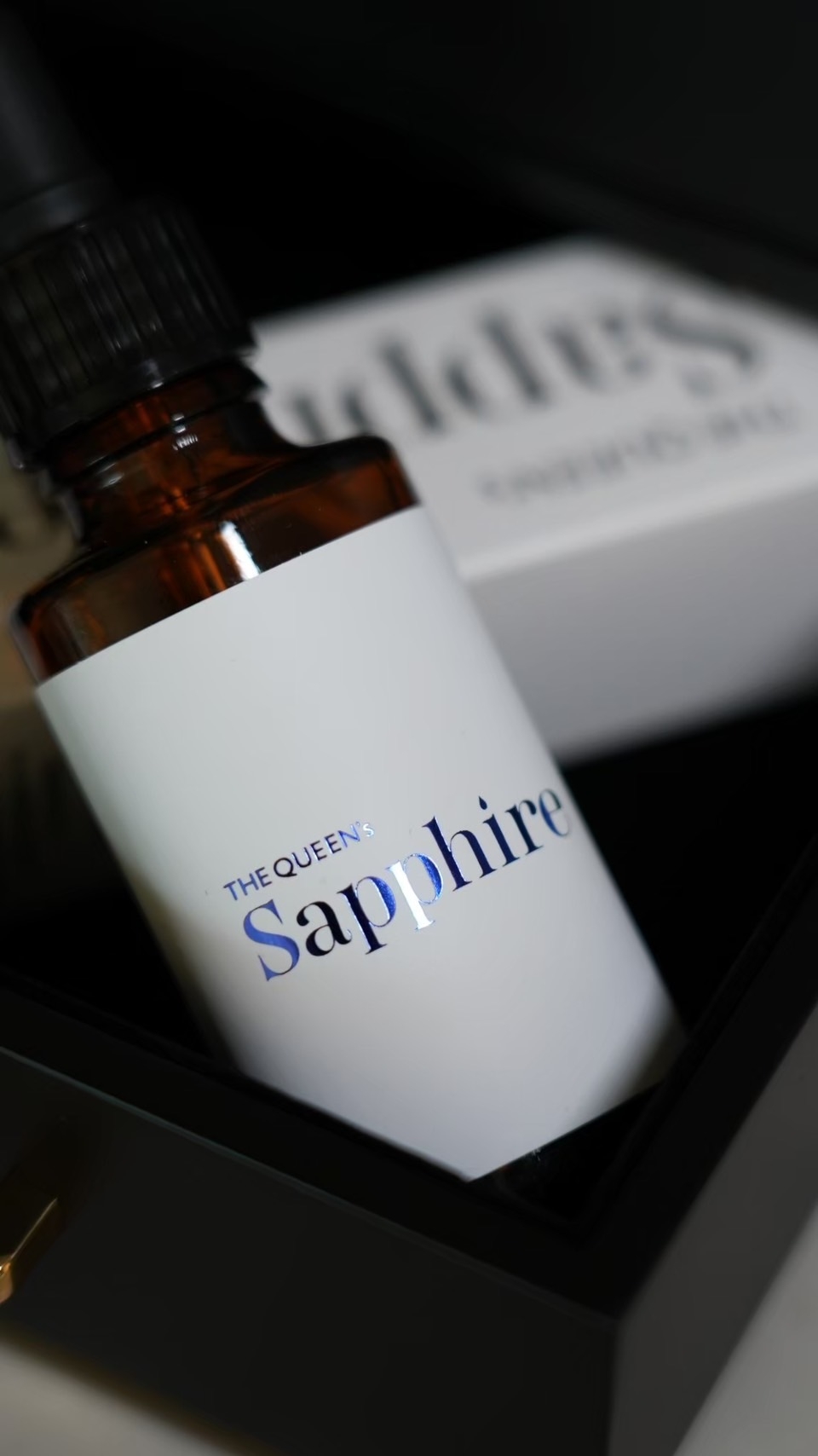 ザクイーンズサファイア美容液の大きな特徴として、化粧品の水の代替えとして東洋医学にも通じる「ブルーローズウォーター」を贅沢に配合しました。天然での作出が困難で、希少価値の高いブルーローズ。ローズの女王であるブルーローズの効果効能としては、抗酸化作用、美肌菌をサポートする働きがあると言われています。金のように貴重なブルーローズが持つ繊細な香りや気品を業界最新のエッセンスで、肌バランスへ贅沢にアプローチします。