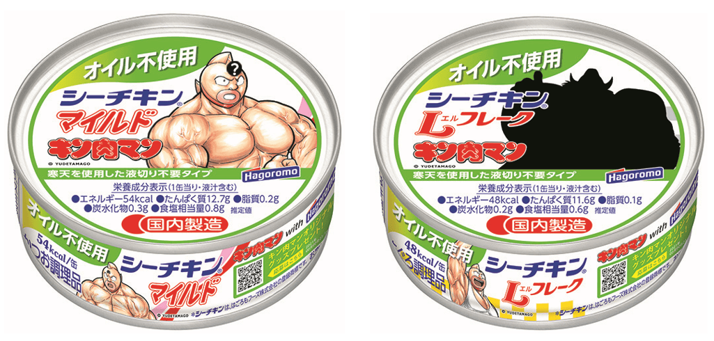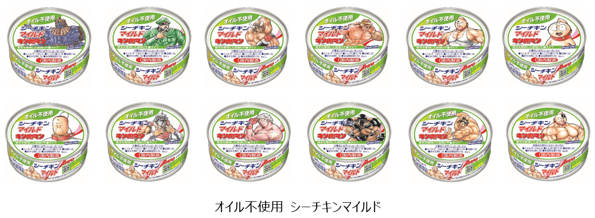 たんぱく質を1缶で12g以上(オイル不使用シーチキンマイルド1缶(70g)当たり)摂取できる上、脂質や糖質はほとんど含まない「オイル不使用シーチキン」。筋トレに適した食品であることから、人気漫画「キン肉マン」とのコラボレーション企画「GO!GO!マッスル!キャンペーン」を実施します。「オリジナルフィギュア」や「オリジナルメダルセット」をプレゼント。さらに、コラボ記念として、全24種の「キン肉マン缶」を発売します。全24種類の「キン肉マン缶」の中には、激レアデザイン缶もご用意しました。