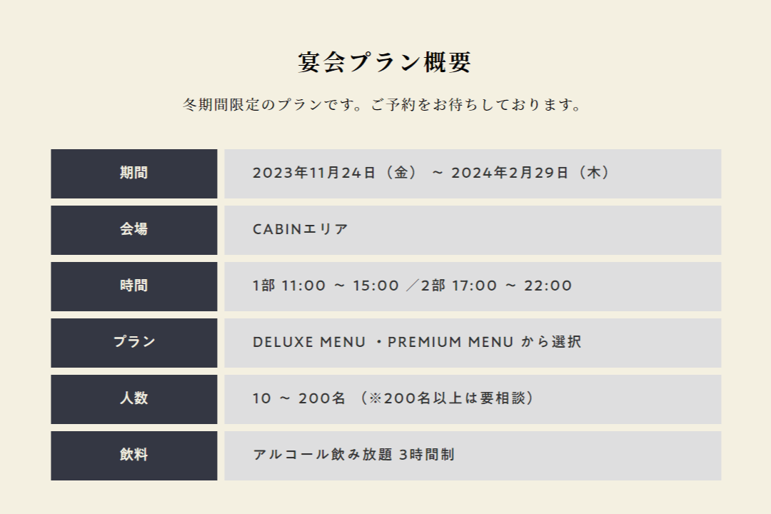 キラナガーデン豊洲CABINエリア_宴会プラン