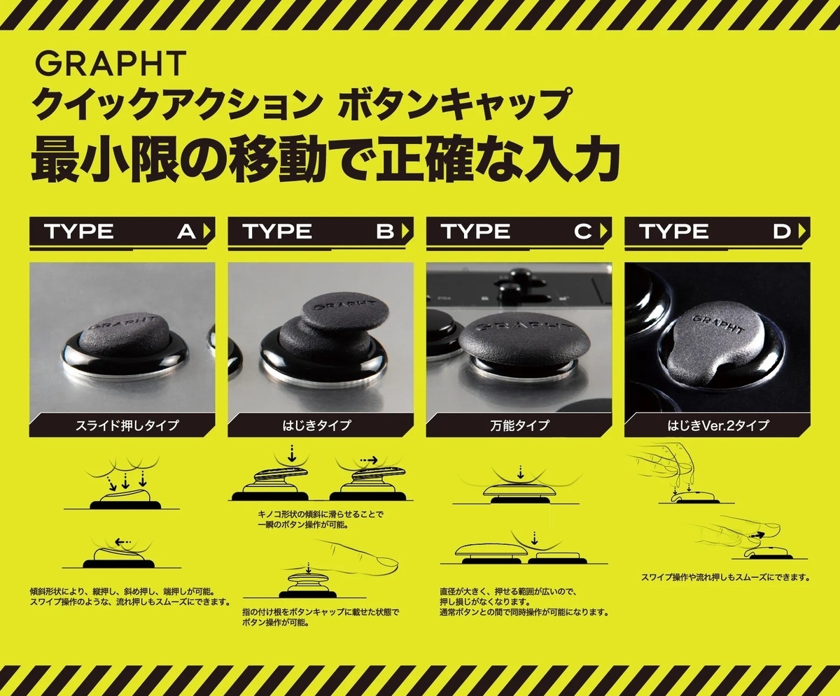 ゲーム環境を一段上に向上させる 『CUSTOM GAMING GEAR SERIES』より、 格闘ゲーム専用『GRAPHT クイックアクションボタンキャップ for GamerFinger』が登場。 2024年8月30日(金)発売