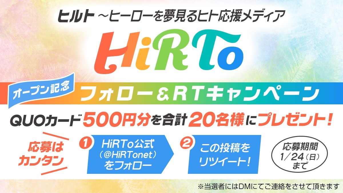 ヒーローを夢見るヒト応援メディア「HiRTo(ヒルト)」1月11日(月祝)よりオープン!フォロー&リツイートキャンペーンも実施!