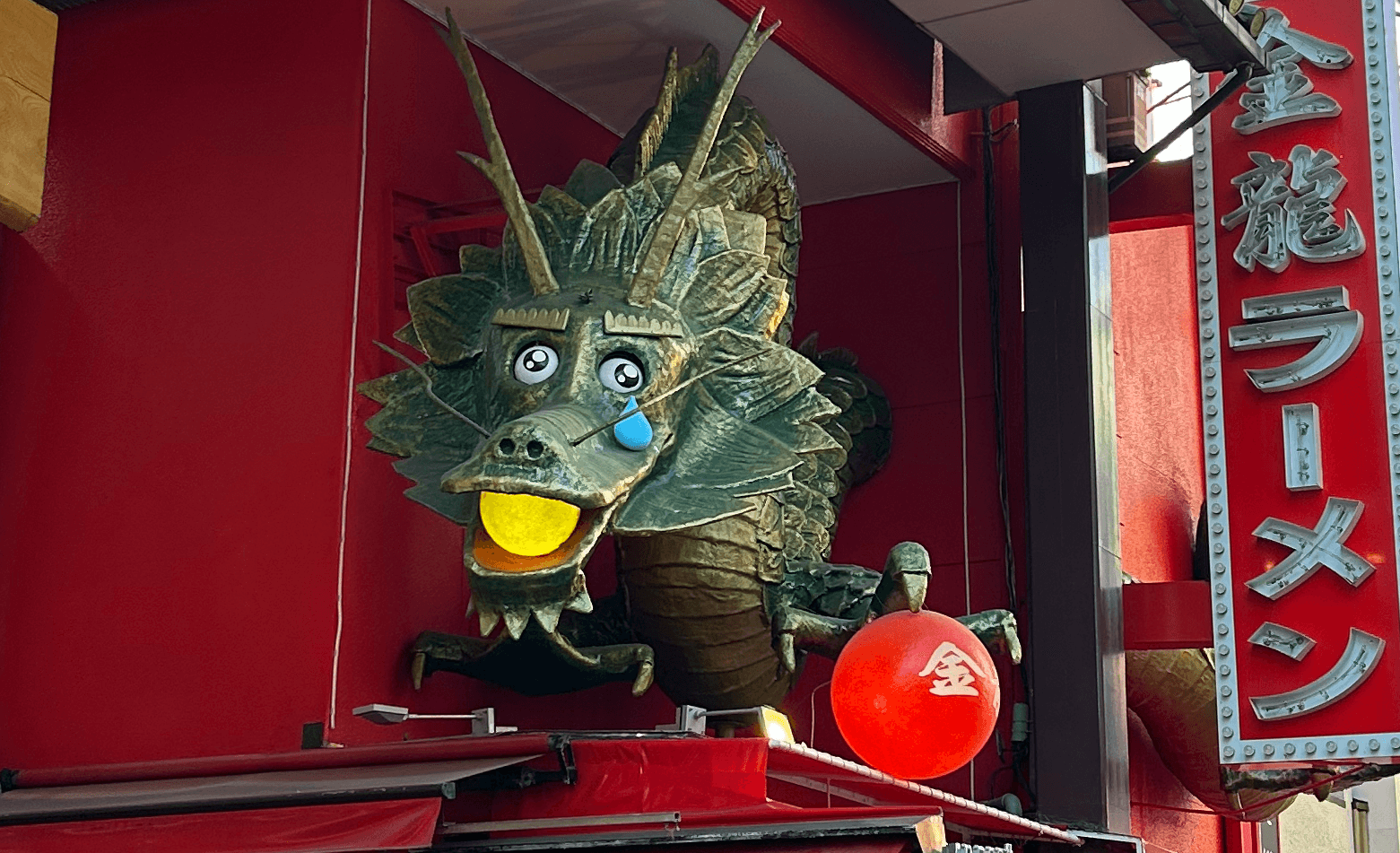 【2】金龍ラーメン道頓堀店の龍の立体看板が「ひつじバージョン」に変身