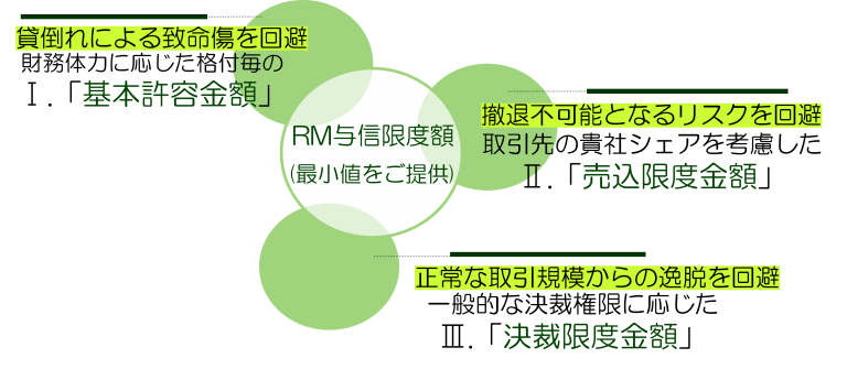 日本・中国での、長年の与信管理業務の経験を基としたロジックにより与信限度額を算出いたします。