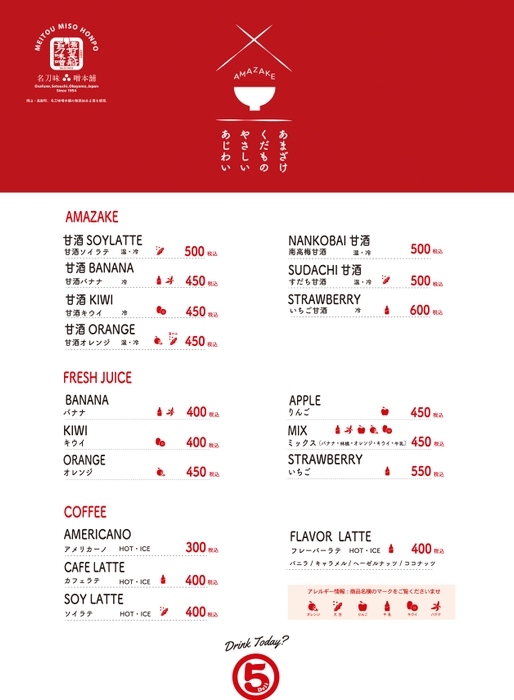 「あま酒ソイラテ500円」&「いちごジュース550円」