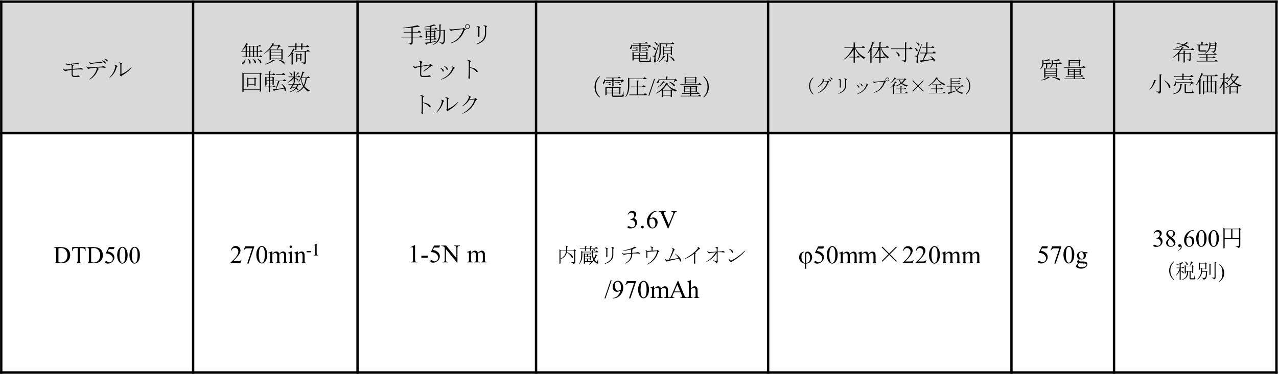 このたび発売する充電式インサート交換ドライバー「DTD500」は、当社独自の技術により業界初※2の電動ドライバー機能と、任意のトルク値で締め付けられるトルクレンチの2つの機能を持った商品です。本商品は、簡便で高精度なインサートの交換作業によって、作業時間の大幅削減と業務の標準化を実現し、お客さまの生産性向上に寄与します。