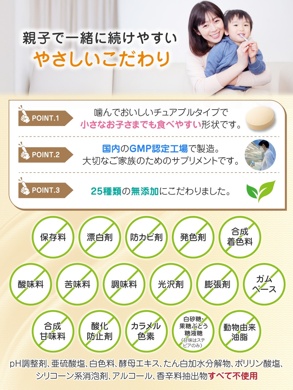 親子で一緒に続けられるチュアブルタイプのサプリメントです。