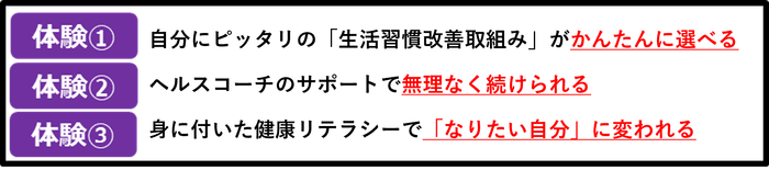 体験① 自分にピッタリの「生活習慣改善取組み」がかんたんに選べる