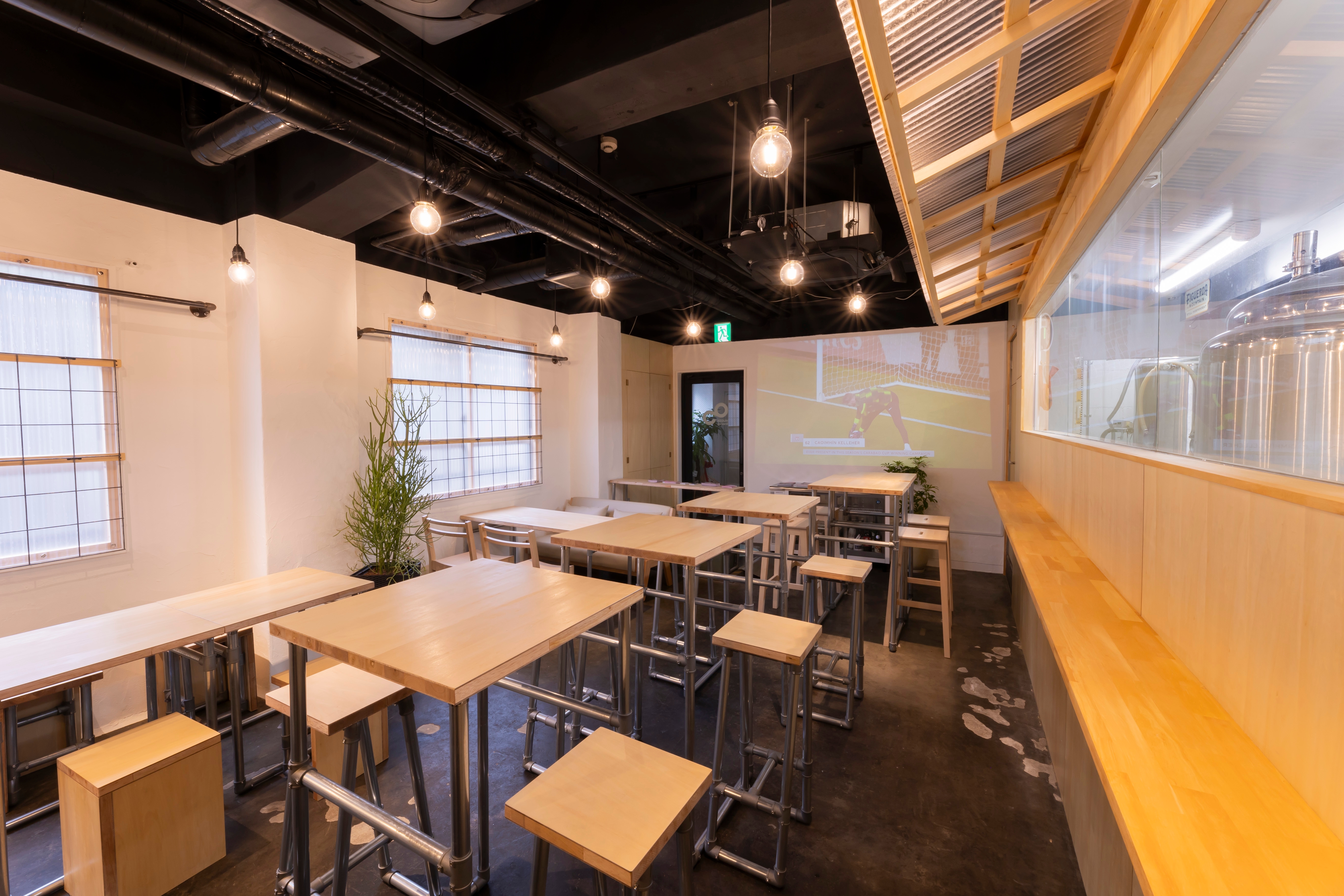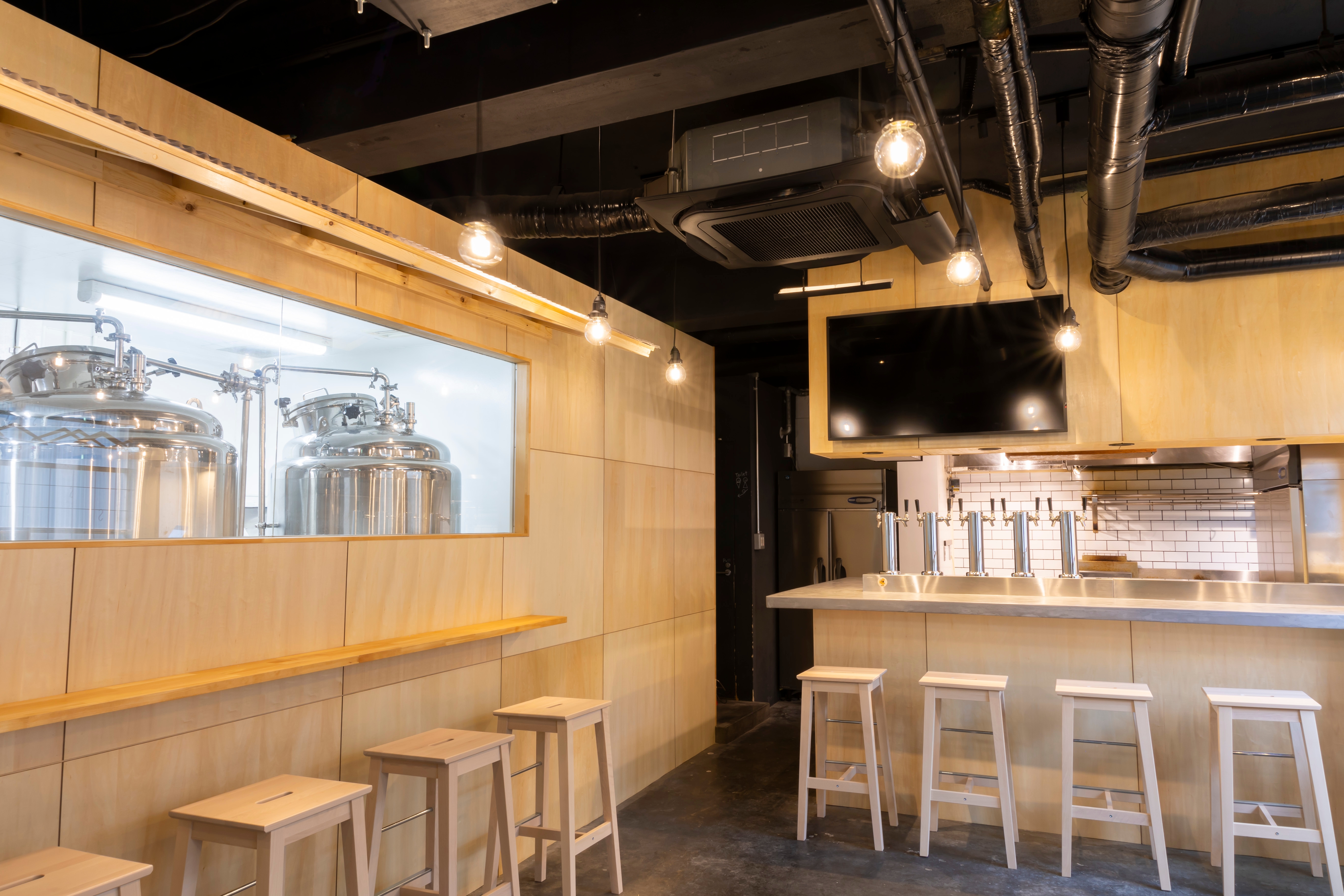 地下にある当店は、店内に足を踏み入れるとクラフトマンシップを感じられるインテリアで、ビールの製造工場と作り手の工夫が垣間見られる空間が広がります。カウンター席や、2名掛けのハイテーブルなど気軽にサクッとビールを楽しめる席や、ゆったりと過ごしていただる4名掛けテーブルもございます。様々なシーンでご利用ください。