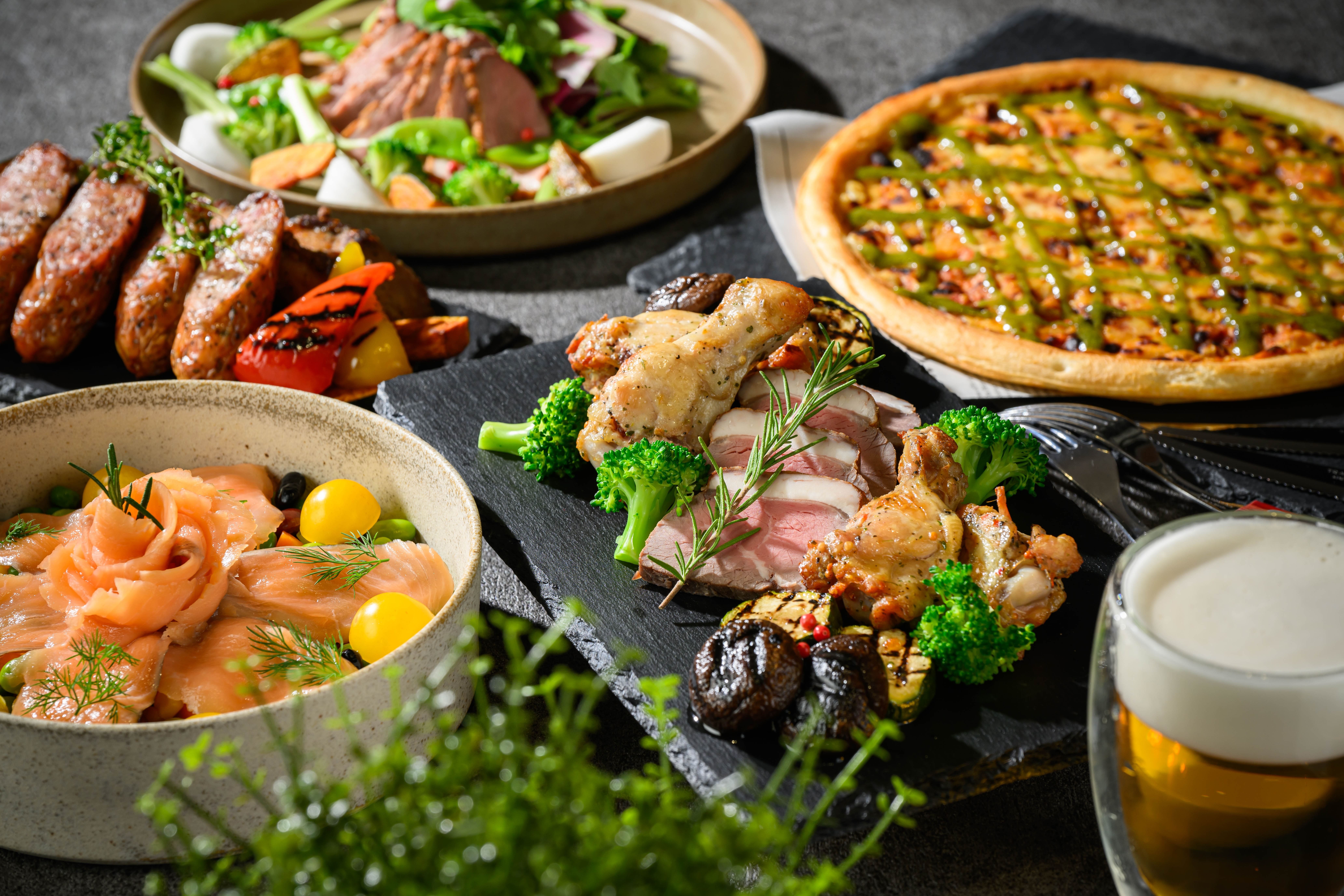 自家醸造ビール含むビール全10種 飲み放題+フード4品(シュラスコ5種 肉プレート+3品)