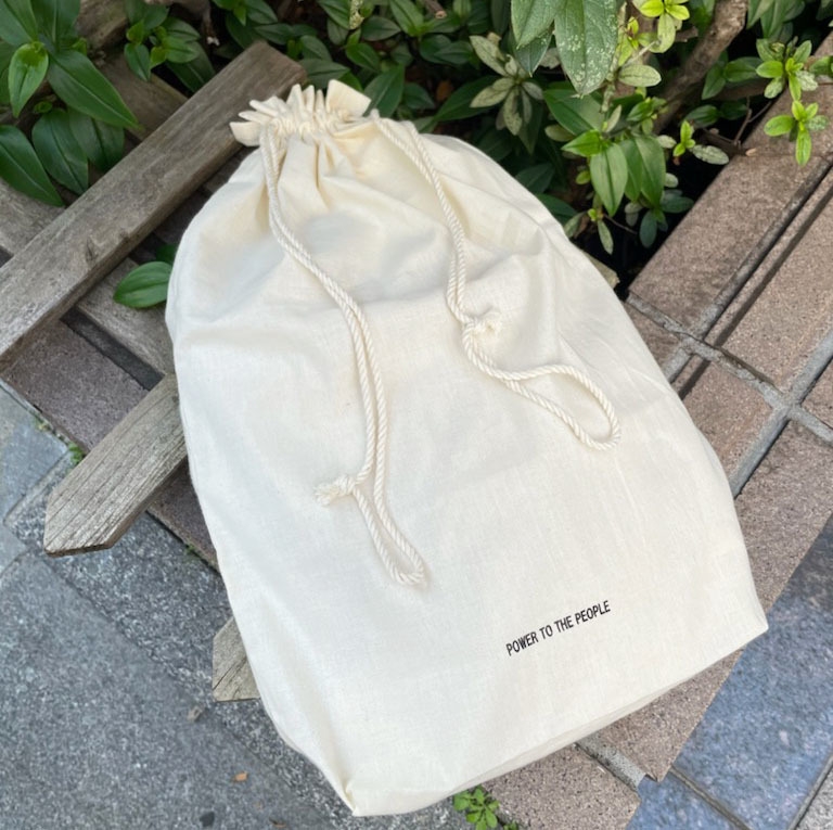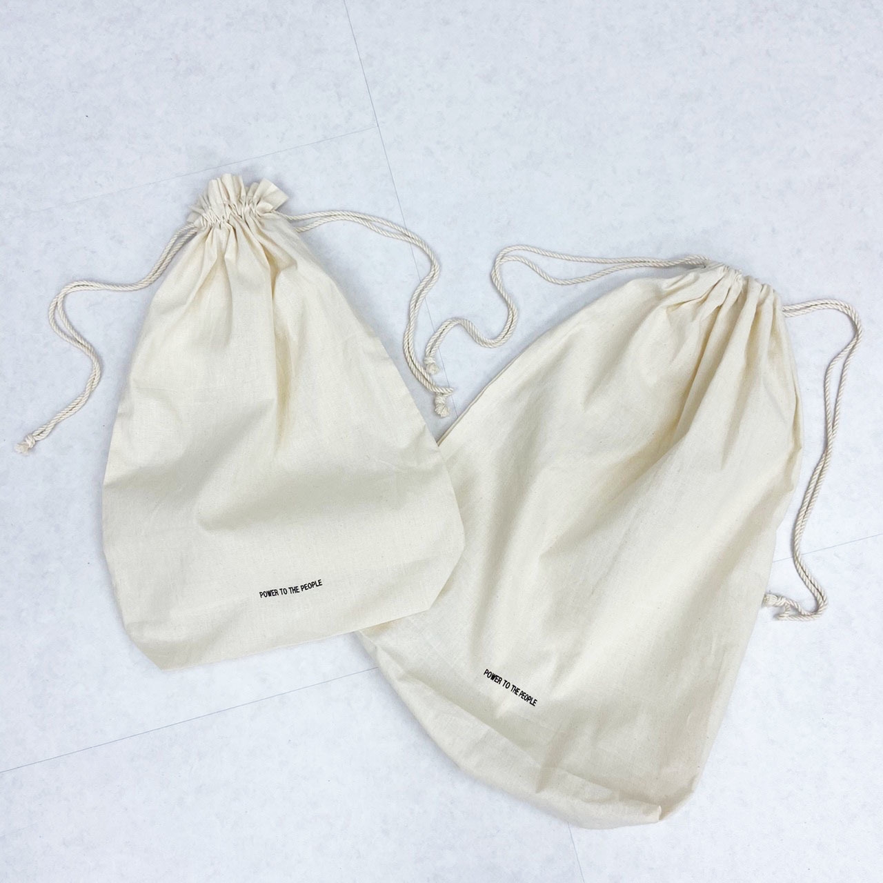 エコの観点から、袋も捨てずに少しでも長くお使い頂けるように、ナイロンや不織布ではなくコットン素材の巾着型のラッピング袋にしました。マチもありバッグインバッグとしてちょっとした旅行などにもお使い頂けます。こちらをご購入時にご希望の方全員に無料でプレゼントラッピングのご対応を致します。