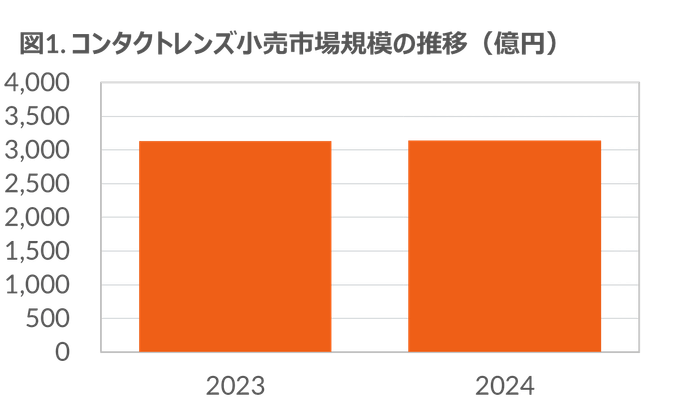2024年のコンタクトレンズ市場1は、販売金額2前年比0.2%増の3,140億円