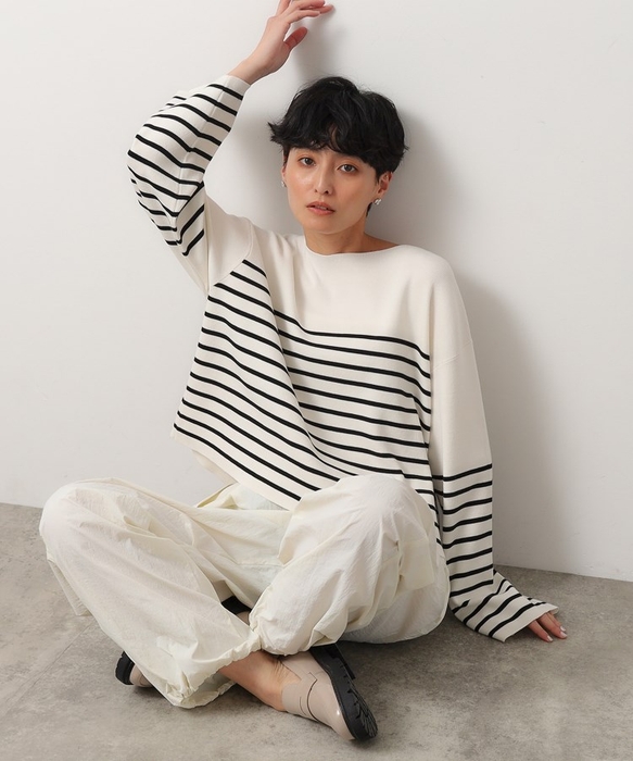 きれいめなカジュアルスタイルには欠かせないボーダーニットです。