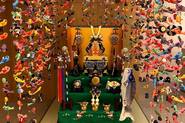 3月の桃の節句にちなんだ雛飾りとそれに関係するモチーフたち、そして5月の端午の節句にかかせない五月人形と関連モチーフを、ロビースペースに一同に展示します。合計1500点以上のモチーフ、一つ一つが全て手作り、ひと針、ひと針想いがこもっています。間近で観覧し、おめでたい節目をスタッフ一同心からお祝いし、地元の伝統文化の伝道者の一員として、その魅力の数々を紹介してまいります。