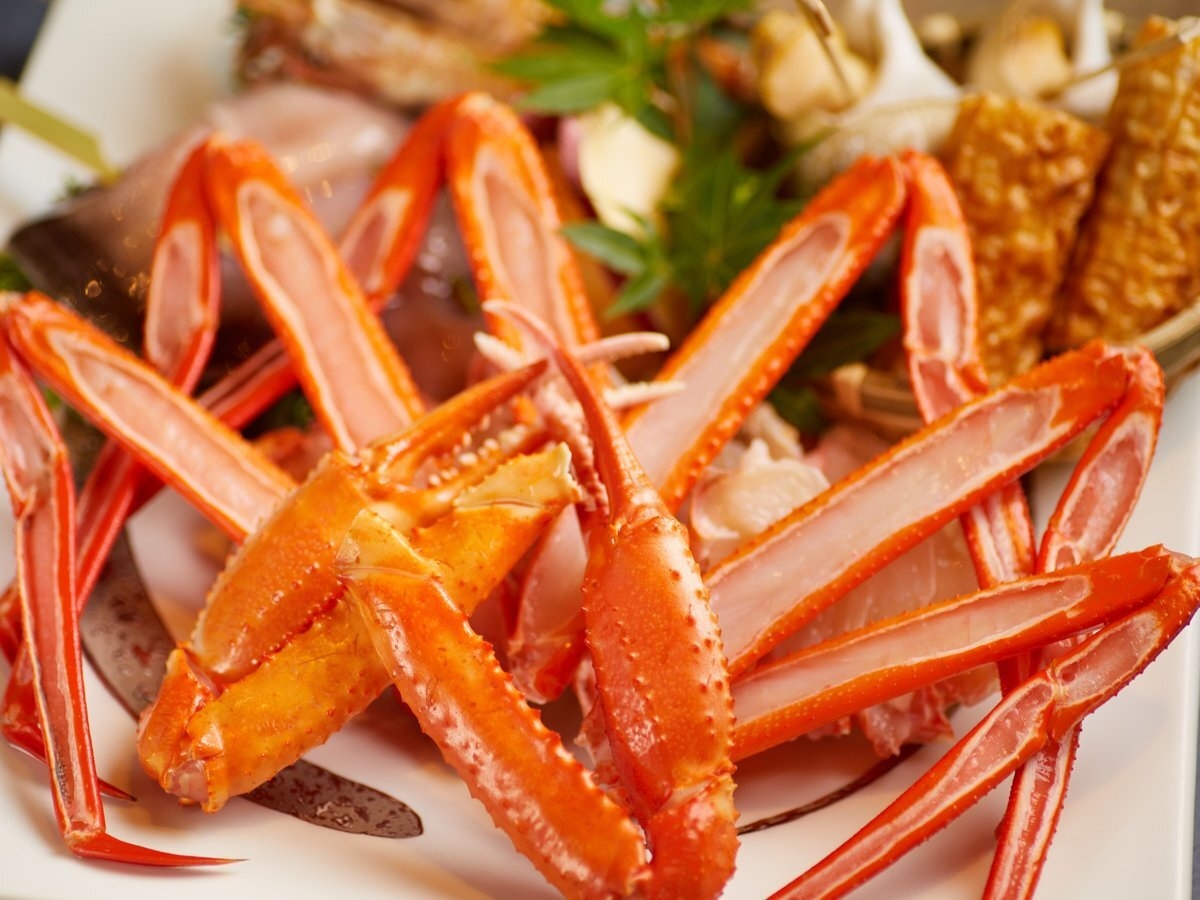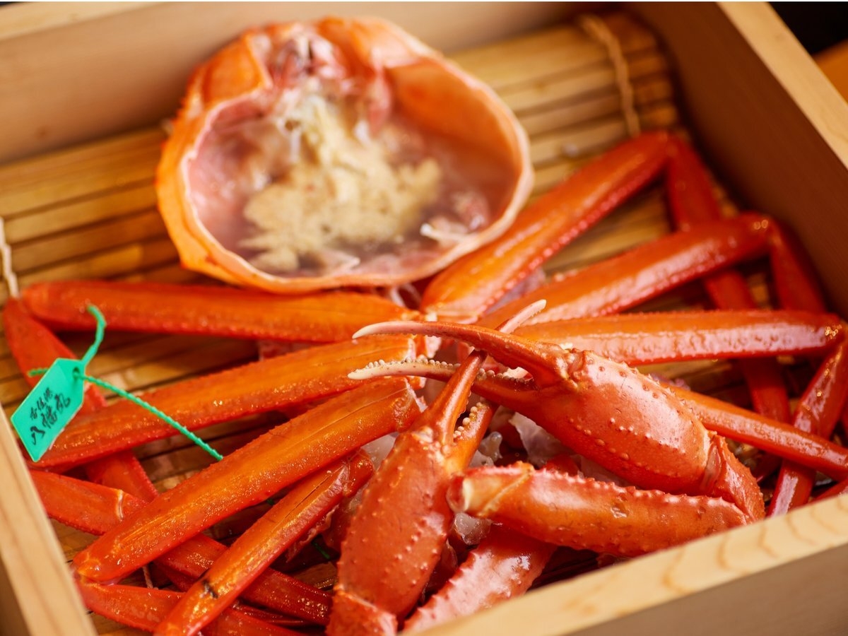例年9月から翌年5月までが漁期ですが、特に9月~11月は“走り”の時期ならではの瑞々しい身質と濃厚な旨みを楽しめます。当館では、朝競りで仕入れた香住ガニをその日のうちにお客様へご提供。焼き・刺し・茹で・蒸しなど、多彩な調理法でお召し上がりいただけます。
