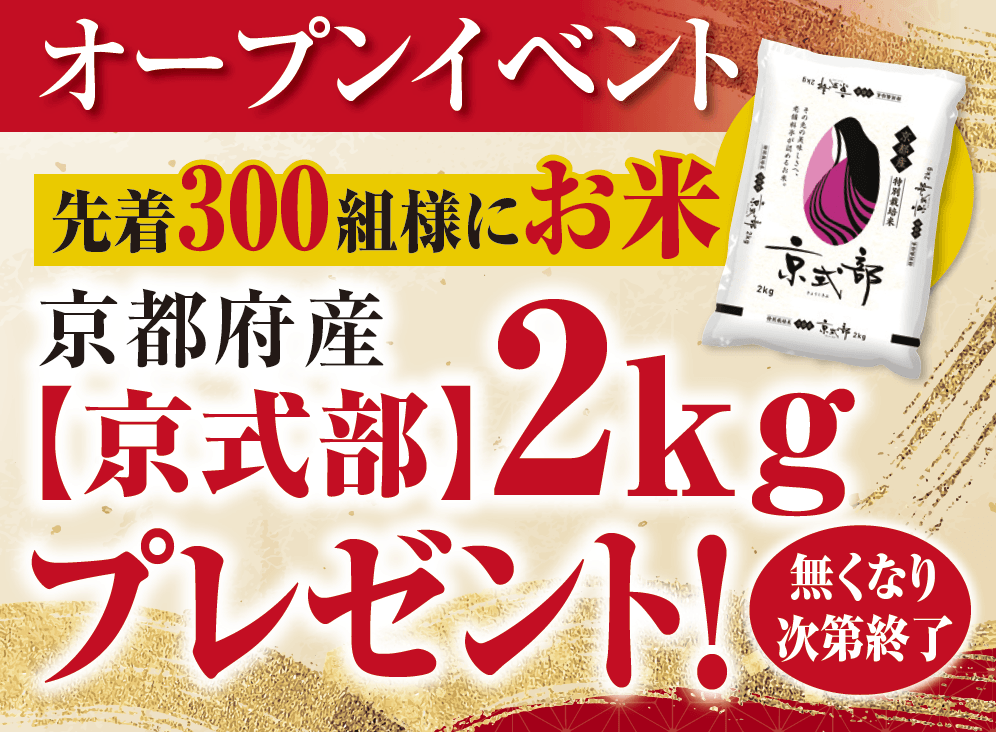 オープン記念キャンペーン(1)にぎり長次郎北名古屋店限定で、京都府産のお米【京式部】2kgをプレゼント