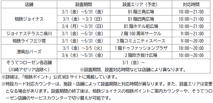 ・主な特設カード対応カウンター(切り替えだけでなく「相鉄ポイントカード」の新規発行も可能です)