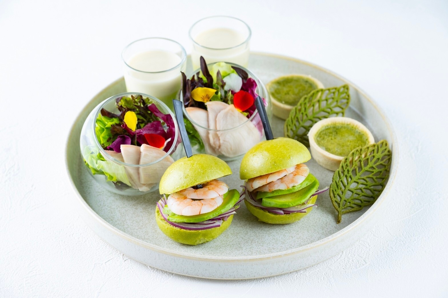 スイーツプレートは、千休の看板商品“抹茶玄米カヌレ”や“米粉の抹茶フィナンシェ”のほか、千休の抹茶もち生大福からインスパイアした抹茶いちご大福、国産マロンペーストと単一品種の抹茶を使用した抹茶モンブラン、ホテル限定ブレンド抹茶を使用した抹茶シュークリームなど味わいの違う抹茶スイーツをご堪能いただけます。