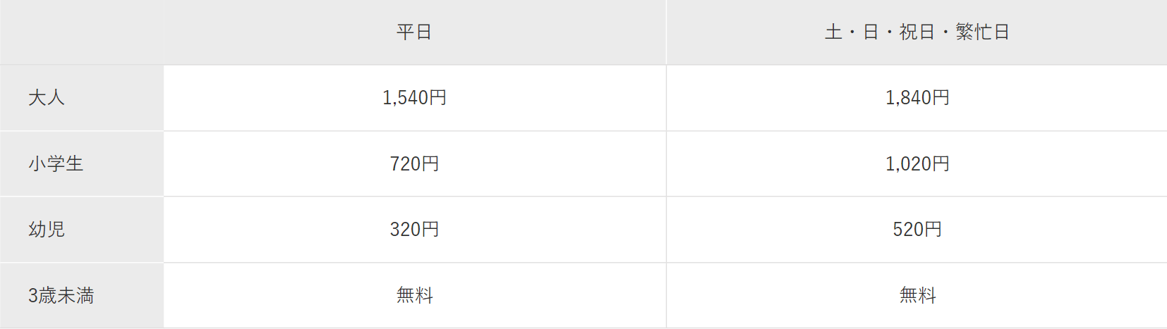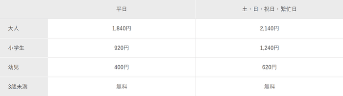 ※中学生以上は大人料金になります