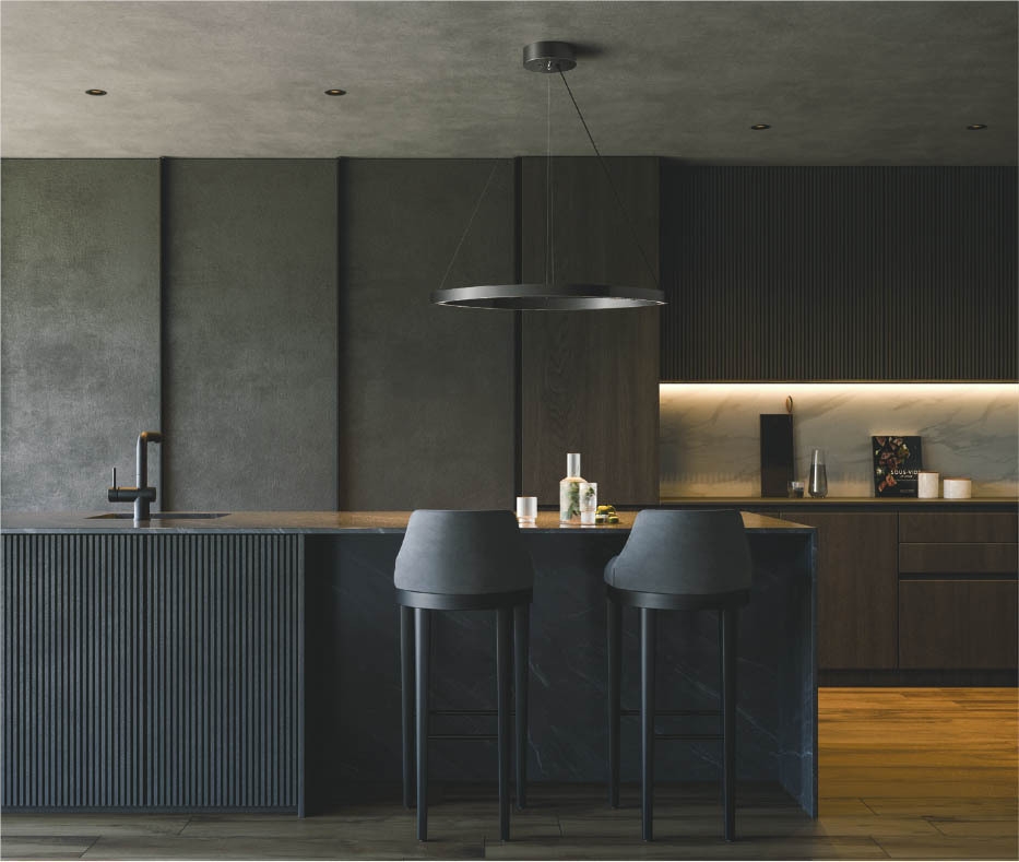 大型サイズでありながら圧迫感を与えず、空間に軽やかさをもたらすオーバルデザインのペンダントライトを6機種拡充しました。モダンインテリアと美しく調和し、空間のグレード感を高めます。セードには、美しい曲面を際立たせるメッキ仕上げを施しており、海外の洗練されたダークトーンのインテリアにも自然に溶け込む高いデザイン性が特長です。空間の情報量を抑えつつ、ミニマルな要素で魅力を最大限に引き出す照明器具としてラインアップしました。