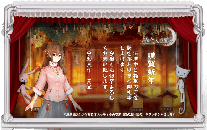 新感覚脱出×恋愛ホラーゲーム 『綺幻人形館 -ドールナイト-』が限定アイテム& お年玉満載の新年プレゼントキャンペーンを開催!