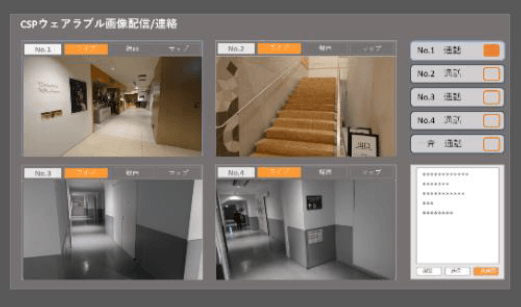ウェアラブルカメラを装着したセキュリティスタッフの映像は、遠隔地からも確認・通話ができるため、異常発生現場の状況をリアルタイムに共有することができ、的確な指示や必要な支援をおこなうことができます。また、警備対応以外のさまざまなサービスにおいても、専門知識を持ったスタッフの指示・支援により、専門スタッフ同様のサービスが可能になるなど、セキュリティスタッフの多能化が実現できます。