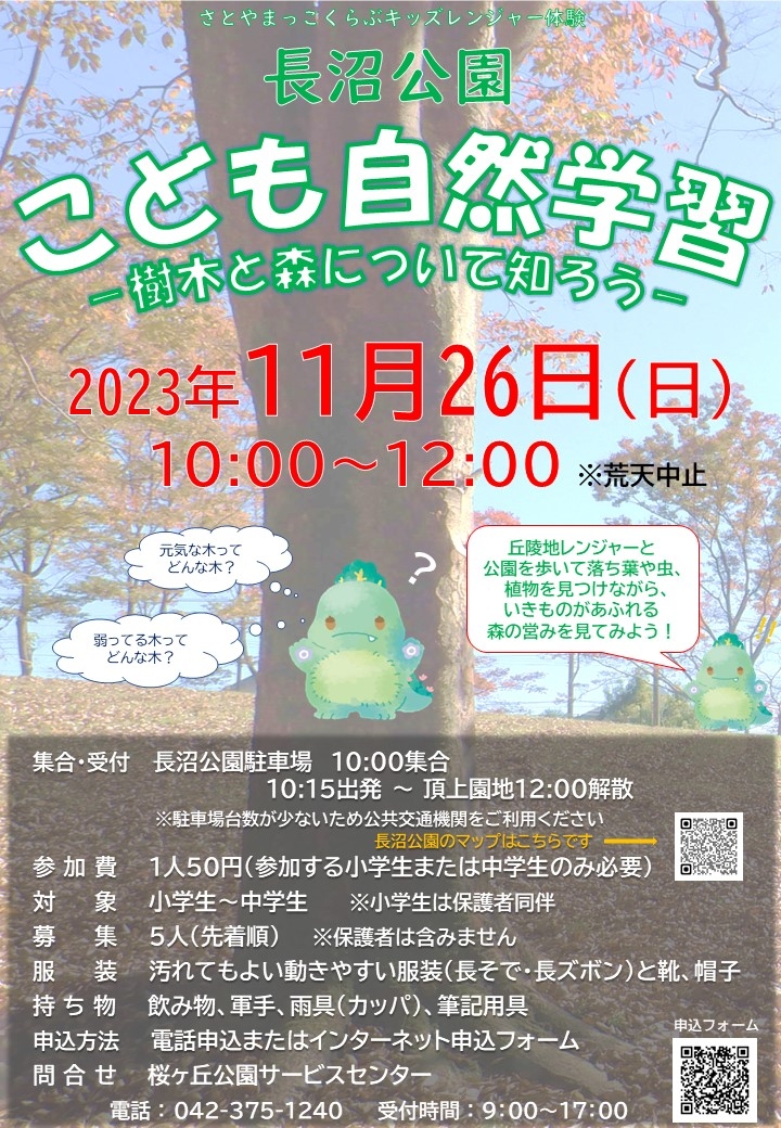 【11/26(日)開催!】長沼公園『こども自然学習~樹木と森について知ろう~』