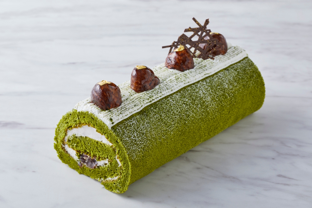 <内容>中心に粒あんと甘さ控えめの粒あんクリームを入れ、抹茶のスポンジで巻いたロールケーキです。抹茶の渋みとあんこの甘さがバランスのとれた味わいで、幅広い年齢層の方へのお手土産としても丁度よい一品です。