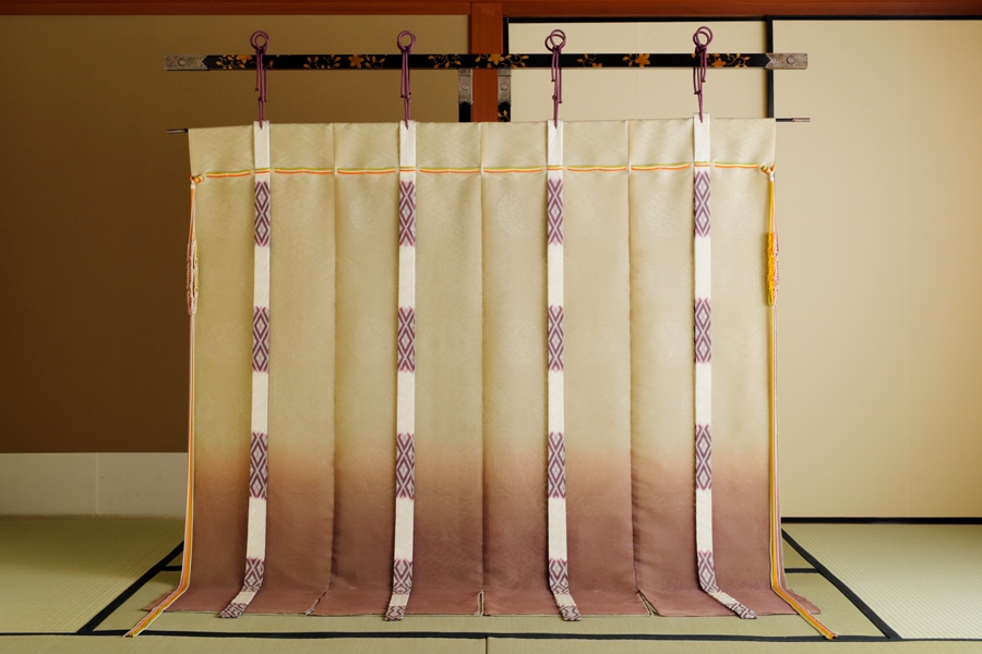 それを囲む格天井(角材を井桁状に組んだもので、最も格式の高い天井)や床の間の基礎造りなどは、丁寧に洗い拭きをし、時代の経過が創る“美”を残しながら改修。几帳や唐紙などは、新調予定です。