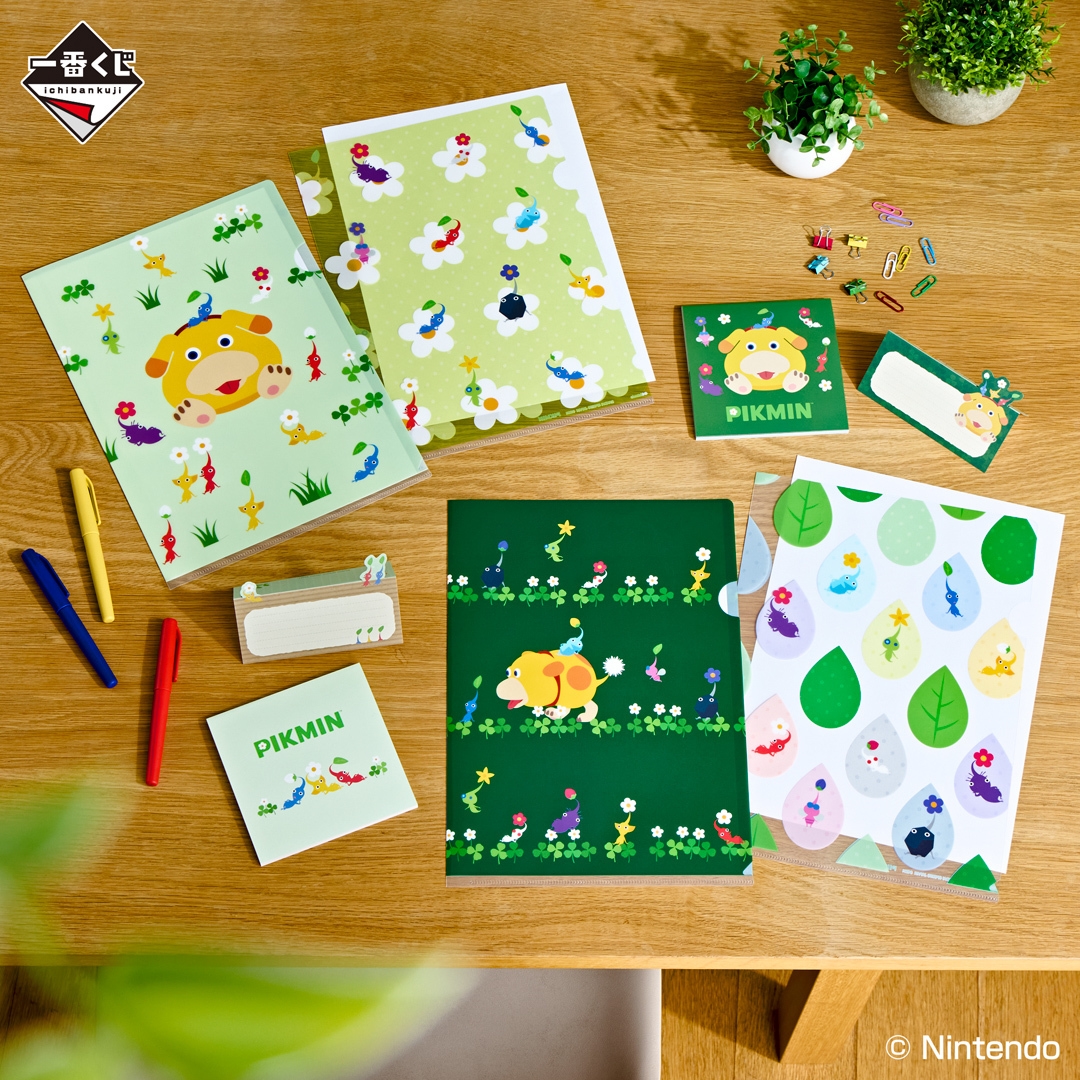 このほか、9種のピクミンがそれぞれにデザインされた陶磁器製のプレートコレクションや、紫ピクミン、白ピクミンがデザインされた巾着と、羽ピクミン、一番くじ初登場の氷ピクミン、ヒカリピクミンがデザインされたクリアポーチの全5種から選べるポーチコレクションをラインナップ。さらに、集めてもカバンなどにつけても楽しめるメタルチャーム、ピクミン達とオッチンがひょっこり現れるデザインのポップアップメモとピクミン達が全員集合したクリアファイルから選べるステーショナリーアソートと、いずれも一番くじならではの商品を取り揃えました。